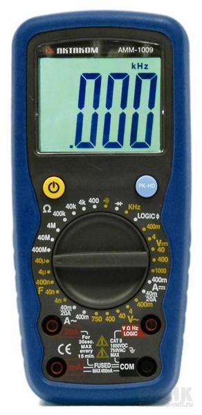 Мультиметр АММ-1009 представляет собой надёжный и простой прибор, имеющий широкий набор типичных измерительных функций и большой ЖКИ (4000 отсчётов) с крупными цифрами и подсветкой Его можно применять для диагностики автомобильных цепей и мощных бытовых приборов, благодаря расширенному диапазону тока (кратковременно до 20 А).