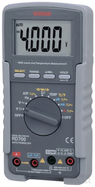 • Разрядность шкалы мультиметра Sanwa RD700: 4000 отсчетов (частота 9999, емкость 5000)