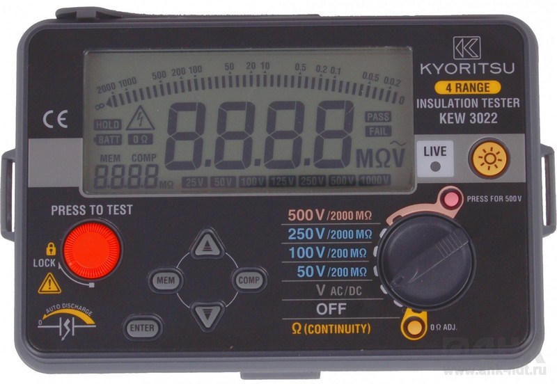 • Диапазон измеряемого сопротивления: 0 ~ 4/ 40/ 400/ 2000 МОм