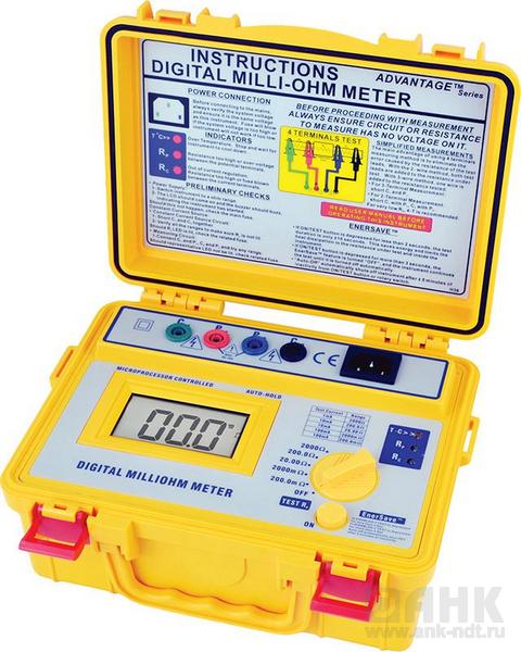 • Диапазон измерений 200 мОм-2000 Ом, разрешение 100 мкОм, тестовые токи 1-100 мА, погрешность измерения сопротивления ±0,5%.Питание 220 В/50 Гц