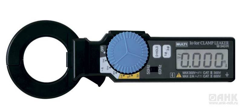 Клещи электроизмерительные, измерение переменного тока утечки (Io), линейного тока (I) 0…10/ 100/ 1000 мА с погрешностью 1% и резистивного тока утечки (Ior) 0...10/ 100 мА с погрешностью 1,5% (50/60 Гц), с разрешением от 0,001 мА, раскрытие 40 мм, 2 изм./сек, ЖК-дисплей (разрешение 9999), удержание показаний, автооткл. через 10 мин., индикатор разряда батареи, герметичный влагозащищенный корпус, 3 х 1,5 В AAA, 44 х 197 х 24 мм, 210 г.