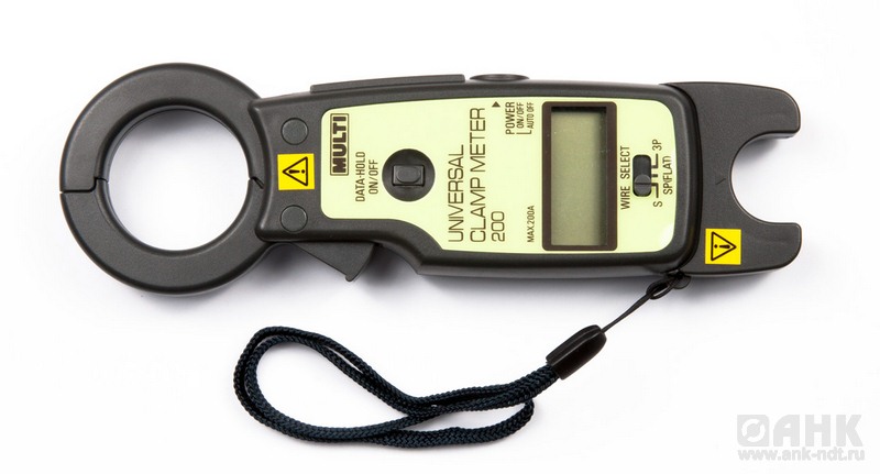 Клещи электроизмерительные, 2 измерительных типа входа: клещи и тип «U» (открытый вход), пределы измерения переменного (50/ 60 Гц) тока 20/ 200 А (клещи) и 200 А (открытый вход), базовая погрешность 1,2 %, 2 изм./сек, ЖК-дисплей (разрешение 1999), удержание показаний, автооткл. через 10 мин., индикатор разряда батарей, раскрытие 33 мм, макс. размер проводника на открытом входе 20 мм, 2 х 1,5 В тип «LR-44»; 54 х 170 х 21 мм, 100 г