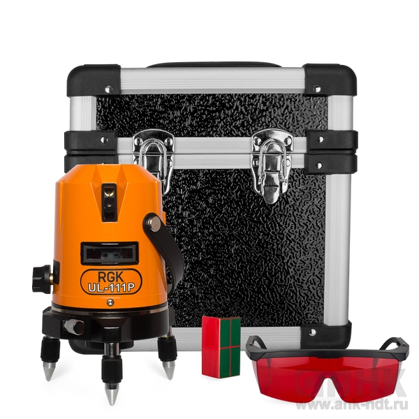 Лазерный нивелир RGK UL-111P строит на плоскости две взаимно перпендикулярных плоскости c с развёрткой 110. Корпус прибора вращается на 360°, значительно расширяя возможности нивелира. Прибор оснащён лазерным отвесом, позволяющим установить прибор точно там, где необходимо. Лазерный уровень  RGK UL-111P будет полезен при выравнивании стен и полов, монтаже различных конструкций и разметке при строительстве и профессиональном ремонте.