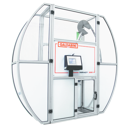 Отличительная особенность маятниковых копров серии Impact – это комплексная система защиты рабочей зоны копра. Защита рабочей зоны состоит из полностью прозрачного ударостойкого пластика, с возможностью переднего и заднего двухстороннего открытия. Комплексная концепция безопасности, реализованная в маятниковых копрах Galdabini включают в себя: систему электрического интерлока, систему старта после закрытия двери, двухуровневая электронную систему защиты, патентованную систему механической блокировки непредусмотренного падения молота, исключающую на 100% возможность повреждения оператора и не зависящая от электроники.