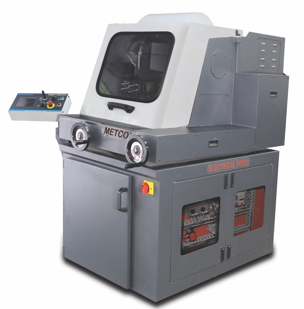 Мощный напольный отрезной станок для резки металлов, керамики и геологических образцов. Корпус выполнен из нержавеющей стали, отрезной диск диаметром 16" (400мм), глубина реза до 130 мм, (с некоторыми материалами может быть меньше), 3-х фазный двигатель мощностью 7,5 кВт. Камера резки выполнена из коррозионностойких материалов – фиброармированный пластик