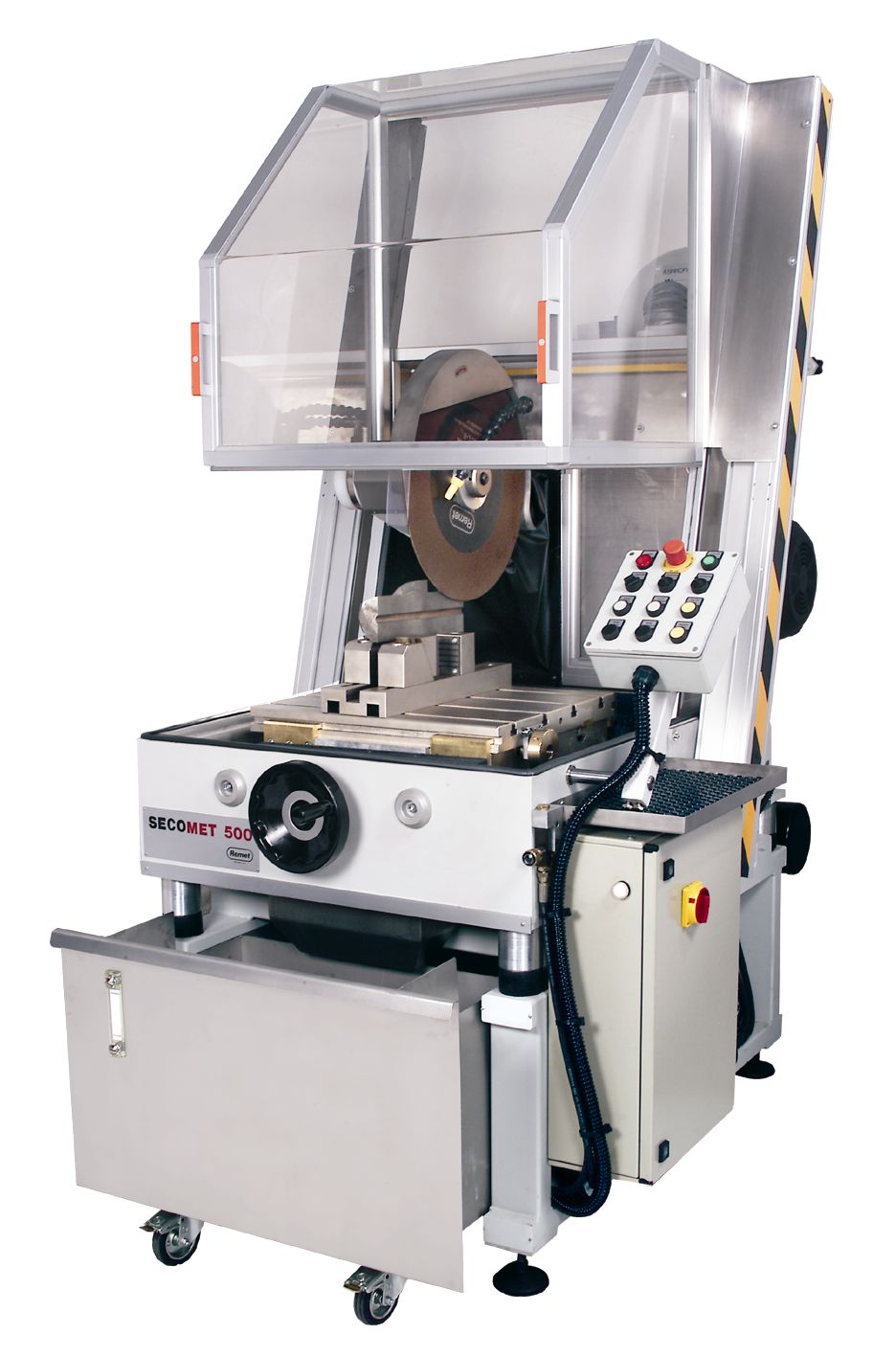 Металлографический отрезной станок SECOMET 400/500 обеспечивает ровный рез без деформаций и перегрева с максимальной шероховатостью поверхности Ra = 1 мкм). Станок легко может работать с образцами неправильной формы т.к. перемещается не только отрезной диск но и рабочий столик перемещается продольно в ручную или автоматически. Конструкция и материалы из которых изготовлен станок учитывают особенности эксплуатации в тяжелых заводстких условиях. Станок устанавлявается на стальную раму с системой поглащения вибраций. Внутри рамы закреплен бак из нержавеющей стали для охлаждающей жидкостью ёмкостью 250 литров с фильтром и отсеком для сбора отходов резки, что значительно упрощает процесс очистки.