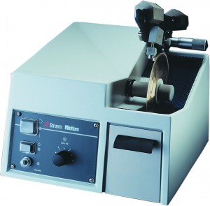 Маленький низкоскоростной высокоточный отрезной станок для резки твердых материалов. Настольная модель. Резка с охлаждением, без деформаций. Позиционирование образца с точностью 0.01 мм.