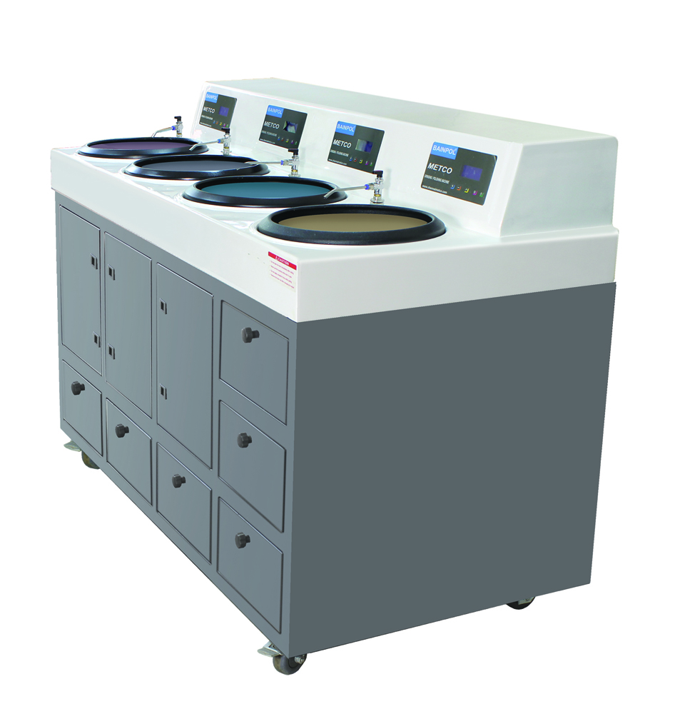 Ручной четырехдисковый наполный шлифовально-полировальный станок с регулируемой скоростью привода и индивидуальным приводом на каждый диск.