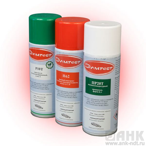 Проявитель обеспечивает покрытие поверхности тонким ровным слоем. Высыхая, состав проявителя Элитест ПР20Т вытягивает пенетрант из полостей, образуя при этом четкое изображение дефектов в местах их расположения на поверхности. При достаточном соблюдении правил подготовки объекта контроля, его очистки от загрязнений, правильной работы с пенетрантом (при температуре изделия выше 100°С рекомендуем пользоваться очистителем Элитест Р10Т и пенетрантом Элитест П62, обеспечивается уверенное выявление окрашенных следов несплошностей. Проявитель Элитест ПР20Т воздействует на пенетрант, образуя контрастный рисунок из дефектов выделенных красным цветом. При этом площадь самих дефектов может быть очень малой.