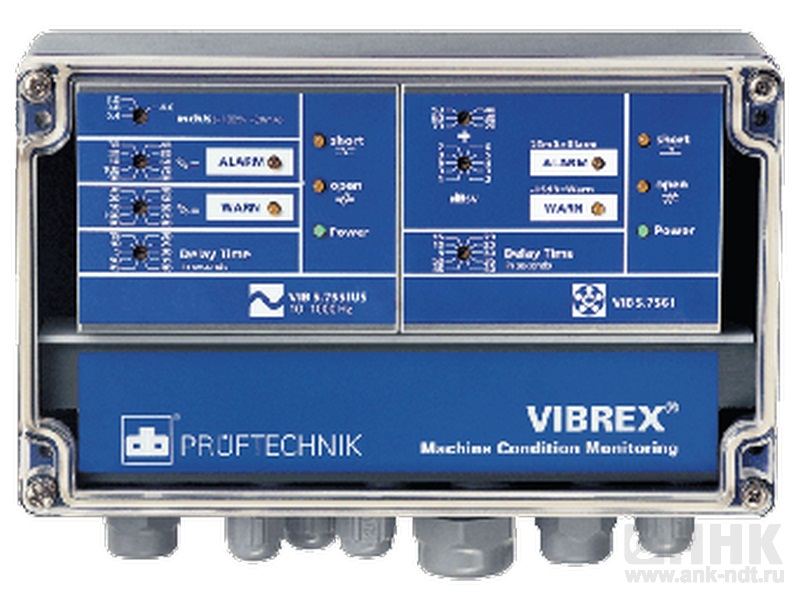Прибор VIBREX предназначается для непрерывного контроля машин, которые работают с постоянной частотой вращения и постоянной нагрузкой. Модульная конструкция позволяет адаптироваться под специфические характеристики машин. Это идеальное устройство для контроля особых характеристик сигнала редукторов и низкоскоростных машин. Сигналы машины измеряются при использовании двухфункционального датчика и обрабатываются соответствующими электронными модулями: модуль вибрации используется для контроля вибрации, а модуль антифрикционного модуля используется для контроля состояния подшипника.