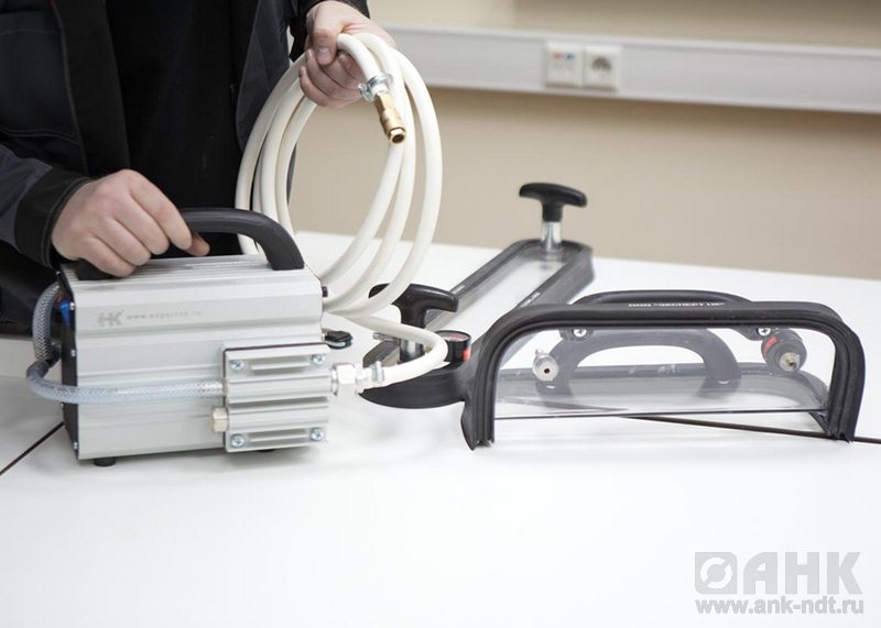 2. Установка вакуумной рамки на контролируемую поверхность и создание между ними вакуума.
