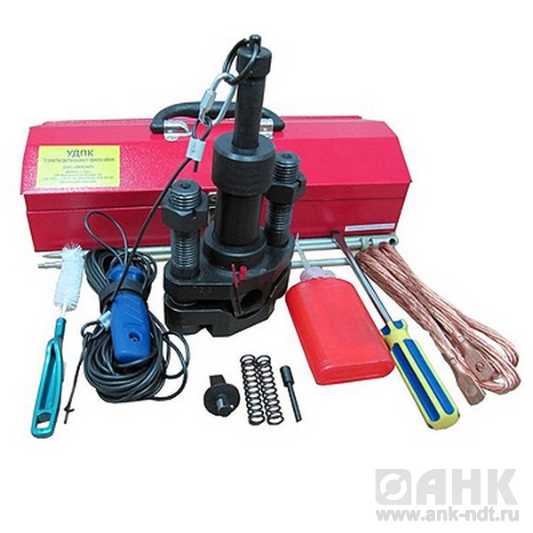 Устройство дистанционного прокола кабеля УДПК предназначено для индикации отсутствия напряжения на ремонтируемом электрическом кабеле 0,4-10 кВ перед его разрезкой путем прокола кабеля по диаметру и закорачивания всех жил разных фаз между собой и на землю, с целью предотвращения возможности поражения персонала электрическим током и электрической дугой.