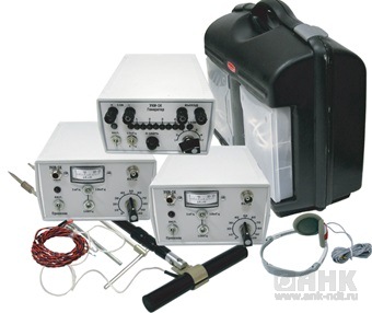 Устройство состоит из 2-х селективных индикаторов малых напряжений (приемных устройств), датчика для определения трассы и глубины залегания трубопроводов и кабелей, набора приспособлений для определения дефектов в изоляции покрытий и генератора переменного тока.