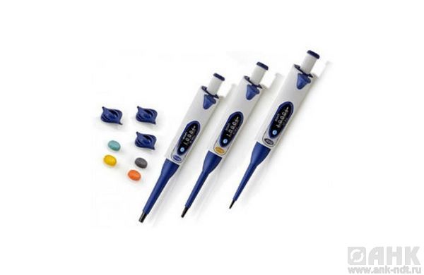 Комплект 1-канальных дозаторов mLINE с диапазонами объемов дозирования: 2-20 мкл; 20-200 мкл и 100-1000 мкл, 3 штатива с наконечниками, каталог