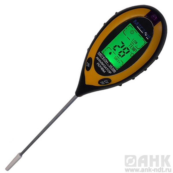 Достаточно погрузить измерительный зонд в исследуемый грунт вблизи растения. Кроме уровня кислотности почвы, данный измеритель измеряет температуру и влажность почвы, а встроенный датчик освещенности постоянно информирует пользователя об уровне интенсивности солнечного света.