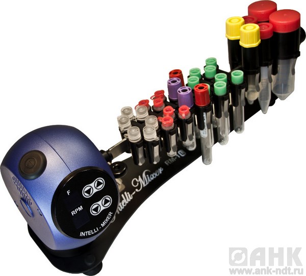 RM-1  это прибор, не имеющий аналогов по возможностям перемешивания жидкостей в пробирках, вакутайнерах и т.д. объемом от 0,5 до 50 мл. Очень эффективен для перемешивания образцов крови в микротайнерах или пробирках типа eppendorf.