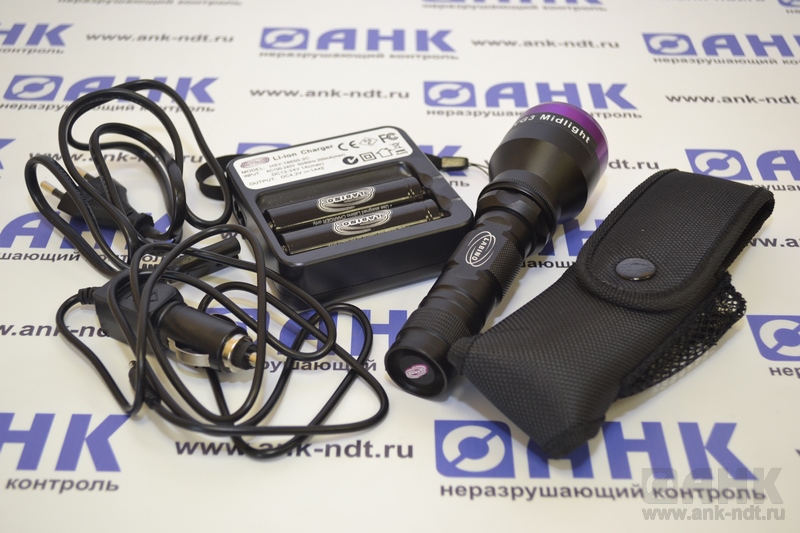 - Продолжительность работы от полностью заряженного аккумулятора составляет около 3 часов. УФ-фонарь работает от одного аккумулятора. В комплекте поставляется два аккумулятора и два зарядных устройства (для зарядки от сети электрического тока и от автомобильного «прикуривателя»). В каждом из зарядных устройств можно заряжать до двух аккумуляторов.