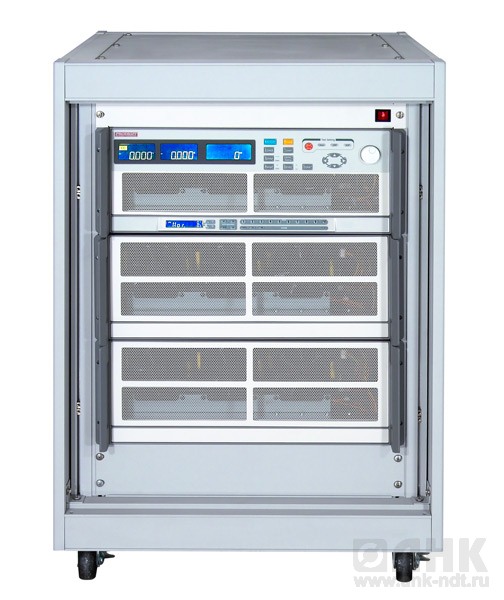 • Аналог АКИП-1306. Ток до 120 А, напряжение до 500 В, мощность до 3,6 кВт, масса 47,2 кг. Состав: 2 блока и подкатной шкаф 15U, 45 кг