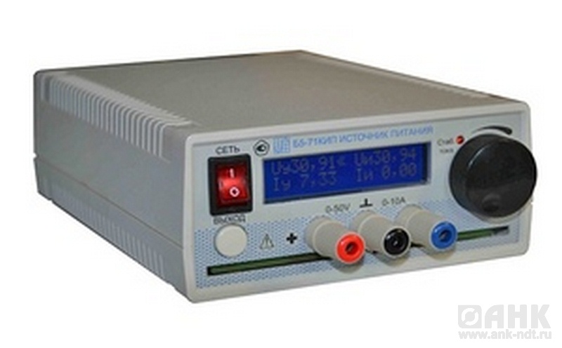 Б5-71КИП обеспечивает воспроизведение стабилизированного напряжения постоянного тока от 0,01 до 50 В с дискретностью 10 мВ и силы тока от 0,01 до 10 А с дискретностью 10 мА, при этом максимальная выходная мощность автоматически ограничивается значением не более 300 Вт.