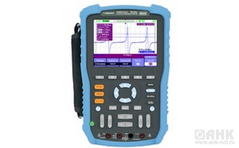 Портативный осциллограф-мультиметр, 2 канала // Осциллограф – полоса 200 МГц; дискретизация 500 МГц (эквив. 50 ГГц); 2 мВ…100 В/дел (макс. 300 В); 2,5 нс…50 с/дел; внутр. синхронизация; автоизмерения (32 параметра); макс. память 32 кБ; сохранение 10 осциллограмм/20 профилей; Регистратор TrendPlot: осциллограф - 800кБ, свыше 18 часов, мультиметр - 1,2 МБ, свыше 33 часов; регистратор реального времени на медленных развертках (от 100 мс/дел) - 7 МБ; TFT LCD дисплей (14,5 см, 320 × 234 точек). Мультиметр – 4 разряда (6000); базовая погрешность DCV ± 1 %; В, А, Ом, мкФ, тест p-n. Универсальное питание (Li-ion, 5 ч); интерфейсы USB 2.0; габариты 259 × 163 × 53 мм; масса 2,5 кг