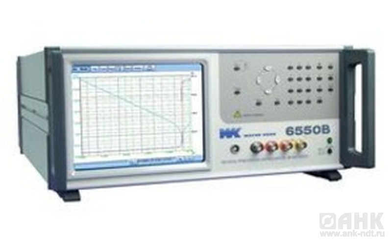 Прецизионный ВЧ измеритель WK 6550B: Диапазон частот 20 Гц - 50 МГц (разрешение 0,01 мГц); Базовая погрешность 0,05 %; Сопротивление (R, Z) 0,01 мОм … 2 ГОм; Емкость 1фФ … 1Ф; Индуктивность 0,1 нГн … 2 кГн; Фазовый сдвиг -180 … +180o; Добротность (Q) 0,00001 … 1000; Тангенс угла потерь (D) 0,00001 … 1000; Реактивное сопротивление (X), комплексная проводимость Y (адмитанс), проводимость (G), реактивная проводимость (B); Отображение графика зависимости 2-х любых параметров от частоты (режим ГКЧ); Интерфейс USB (Подключение клавиатуры, мыши, внешних носителей), VGA, LAN, GPIB; Запись/считывание профилей (20 ячеек); TFT сенсорный дисплей 640 х 480; Масса 14,5 кг.