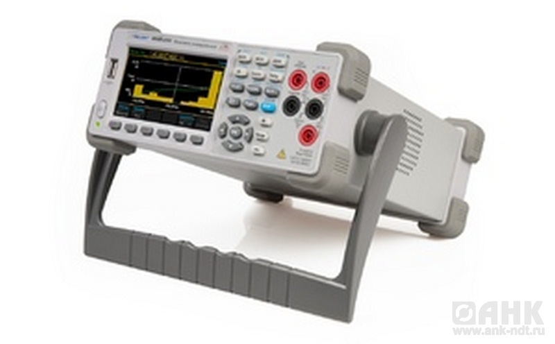 Вольтметр универсальный цифровой 6½ разрядов. Базовая погрешность ±0,0035%; постоянное напряжение 600 мВ/ 6/ 60/ 600/ 1000 В; переменное напряжение (AC+DC) 600 мВ/ 6/ 60/ 600/ 750 В (до 100 кГц); постоянный ток 600 мкА/ 6/ 60/ 600 мА/ 6/ 10 А; переменный ток (AC+DC, True RMS) 60/ 600 мА/ 6/ 10 А (до 10 кГц); F(T)= 20 Гц (0,05 с)…1 МГц (1 мкс); сопротивление 600 Ом/ 6/ 60/ 600 кОм/ 6/ 60/ 100 МОм (2 и 4-проводные измерения); t = -270…+1820 °C (термопара B, E, J, K, N, R, S, T); емкость 2/ 20/ 200 нФ/ 2/ 20/ 200 мкФ/ 10 мФ; проверка непрерывности цепи, проверка p-n переходов, измерение и отображение сразу двух параметров; переключаемая скорость измерений: 5/ 50/ 150 изм./сек; функции: сохранение данных на USB-носитель. Математические функции и статистическая обработка (мин/макс/среднее; дБ/дБм; допусковый контроль; Δ-измерения, гистограммы, построение тренда. СКО). Интерфейсы USB, RS-232, LAN; ПО EasySDM; 282 х 260 х 105; масса 3,5 кг
