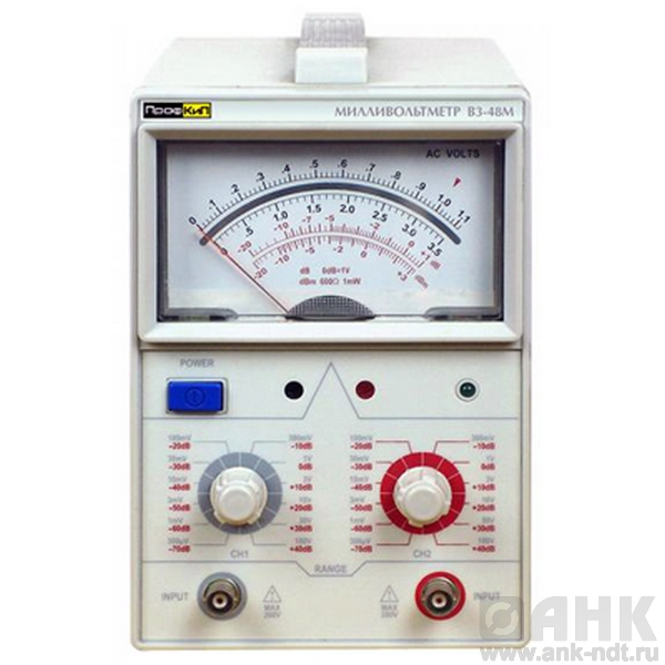 Милливольтметр ПРОФКИП В3-48М предназначен для измерения напряжения, имеет стрелочную индикацию, позволяет производить измерения постоянной и переменной составляющих в частотном диапазоне до 100 кГц.