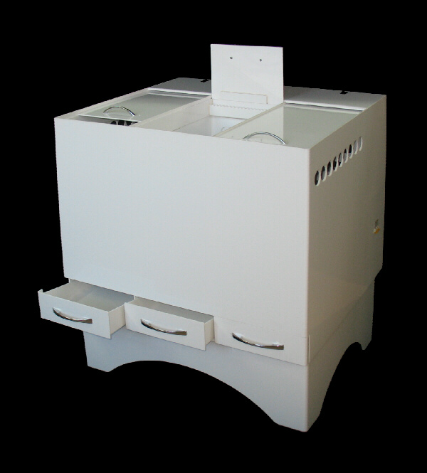 Пластиковые шкафы для сушки рентгеновской пленки обеспечивают быструю сушку пленки, имеют очень низкий уровень шума и высокую надежность, имеют поддоны для сбора стоков воды с пленок, а также неактиничную подсветку в камерах. Каждая камера шкафа для сушки рентгенограмм закрывается откидной крышкой.