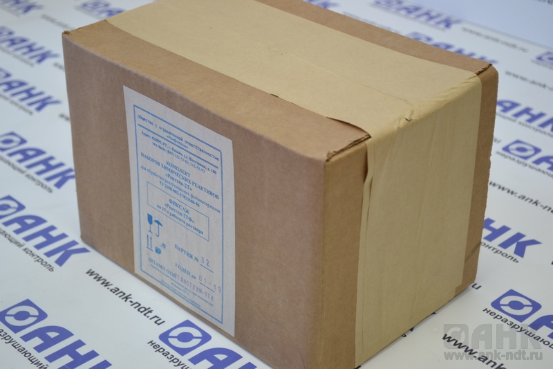 Комплект наборов выпускается в виде сухих смесей для приготовления рабочих растворов объемом 1,5; 3,0; 5,0 и 15,0 литров и позволяет обработать не менее 1,5 м2пленки и соответственно, 3м2, 5м2, 15м2 радиографических технических пленок.