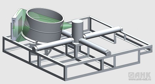 Манипулятор выполнен в виде двух поворотных столов: малого и большого. Большой поворотный стол имеет две пары перпендикулярно расположенных приводных роликов. Вращение роликам передается через мотор-редуктор. Малый рабочий стол оснащен кулачковым зажимом и смонтирован таким образом, что его рабочая плоскость наклонена под углом 10° к плоскости большого стола. В зависимости от размера катушки оператору предлагается использовать большой или малый загрузочный стол. В центре камеры расположена рентгеновская трубка под металлическим колпаком, который предотвращает ее от возможных механических повреждений. Обеспечено вращение объектов контроля на угол 360°. Рентгеновская трубка и детектор рентгеновского излучения установлены в камере жестко без возможности осуществлять манипуляцию.