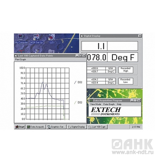 Обеспечивает пользователей приборов Extech из серии «Для работы в тяжелых условиях» возможностью для передачи, отображения и хранения данных на ПК.