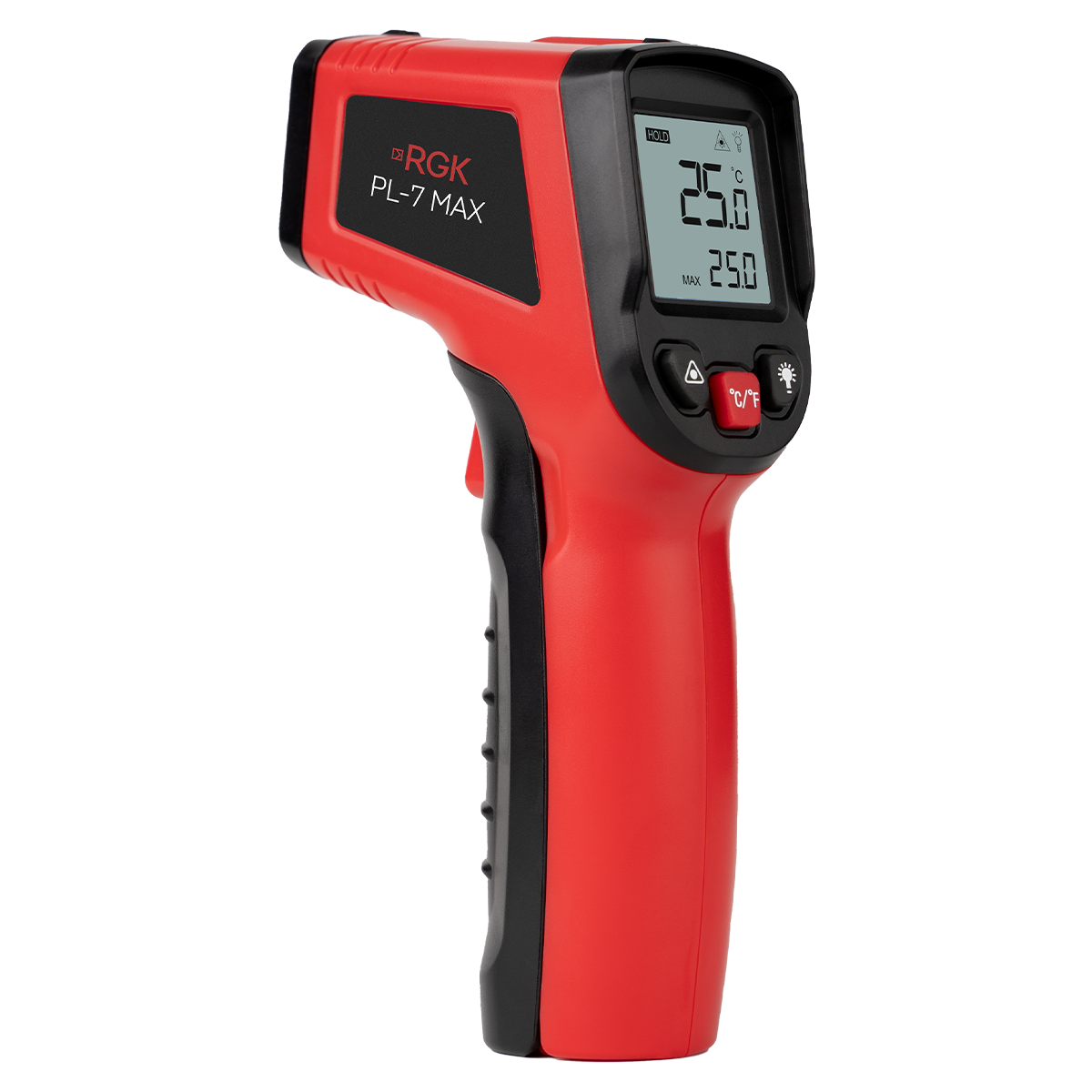 Пирометр RGK PL-7 Max - модификация популярной модели инфракрасного термометра PL-7. Главное отличие этой модели от базовой - расширенный рабочий диапазон, который составляет от -30 до +500 °С. Это позволяет контролировать самые разные технологические процессы, от заморозки до высокотемпературных операций. При этом точность осталась на том же высоком уровне, поскольку погрешность данных в большей части диапазона не превышает 2°С.
