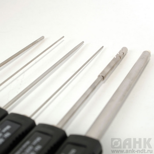 Выносной датчик типа "К" может быть подключен к любому измерителю температуры, использующему в качестве подключаемого датчика датчик типа "К". Каждый датчик оснащен твердой рукояткой.