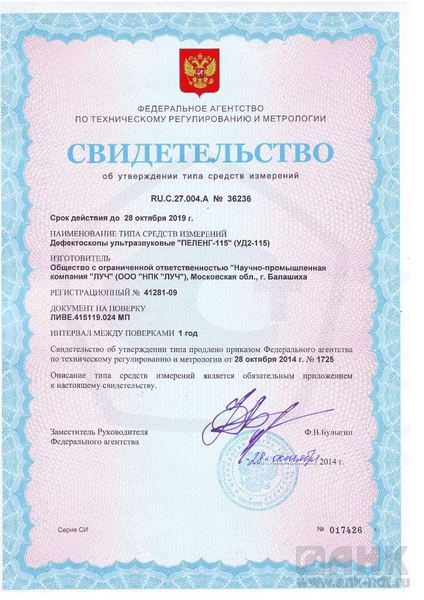 ·         Дефектоскоп ультразвуковой «Пеленг-115» (УД2-115). Методика поверки ЛИВЕ.415119.024 МП 1 экз.