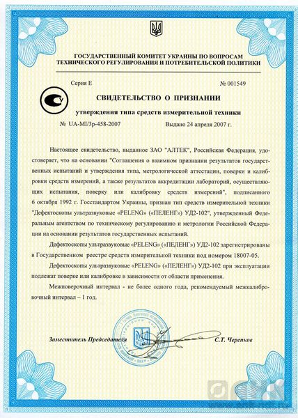 Ультразвуковой дефектоскоп УД2-102, позволяющий выявлять внутренние дефекты в изделиях из металлов, сплавов и неметаллов широкой номенклатуры (в том числе - контроль сплошности сварных соединений).