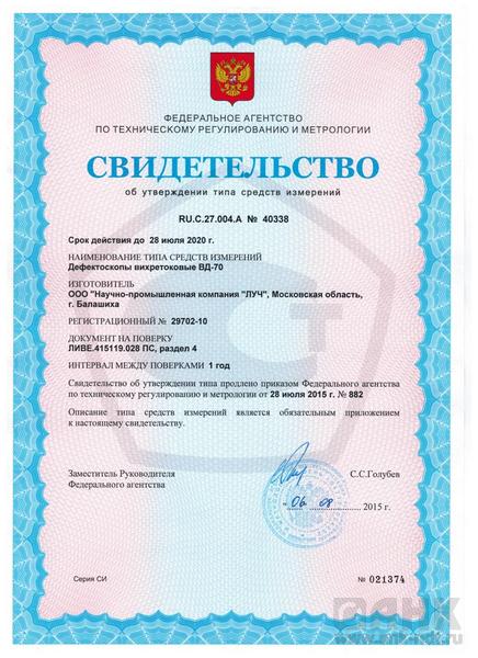 Вихретоковый дефектоскоп ВД-70, использующийся для контроля изделий из ферромагнитных и немагнитных материалов для обнаружения поверхностных и подповерхностных дефектов.